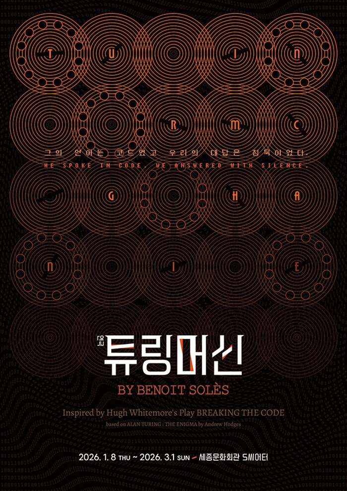 | 공연소개 | AI 시대를 연 천재, 앨런 튜링 생각하는 존재는 누구인가? 1,400만 명의 생명을 구한 암호 해독가이자 현대 컴퓨터 과학과 인공지능(AI)의 개념을 연 인물. 그가 세상에 남긴 질문을, 오늘의 무대에서 마주한다. 프랑스 연극계 최고 권위 ‘몰리에르 어워즈’ 주요 4개 부분 수상 作 2026년, 국내 초연 후 2년만에 재연! 프랑스에서 가장 화제를 모은 연극 <튜링머신>은 2023년 국내 초연 당시 밀도 높은 연기와 깊은 서사로 관객과 평단의 뜨거운 호평을 받았다. 2026년, 세종문화회관 S씨어터에서 더욱 깊어진 무대로 돌아온다. 사면형 무대가 만드는 극대 몰입감 관객과 네 방향으로 마주하는 사면형 무대 위에서 두 명의 배우는 다수의 인물을 오가며 언어와 감정, 수학과 사유가 겹쳐지는 순간들을 밀도 높게 쌓아 올린다. 튜링의 고독과 내면을 가장 가까운 거리에서 전달하며, 단 한 순간도 긴장을 놓을 수 없는 강렬한 연기와 연출의 시너지를 완성한다. [SYNOPSIS] 1952년 1월, 도둑이 들었다며 경찰서를 찾아온 한 남자. 수사관 로스는 그의 말 속에서 도저히 이해할 수 없는 과거의 흔적을 발견한다. 그 남자의 이름은 앨런 튜링. “기계는 생각할 수 있는가?” 평생 침묵해왔던 질문과 비밀이 그의 입을 통해 서서히 드러나기 시작한다. |
