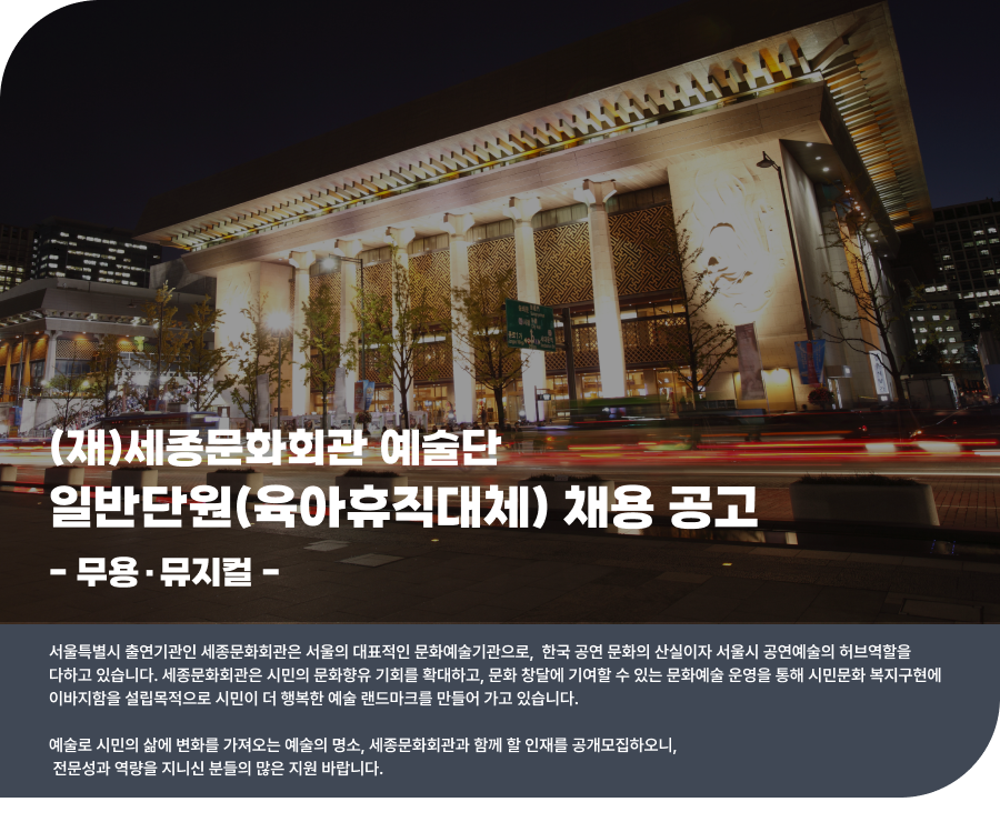 (재)세종문화회관 예술단 일반단원(육아휴직대체) 채용 공고