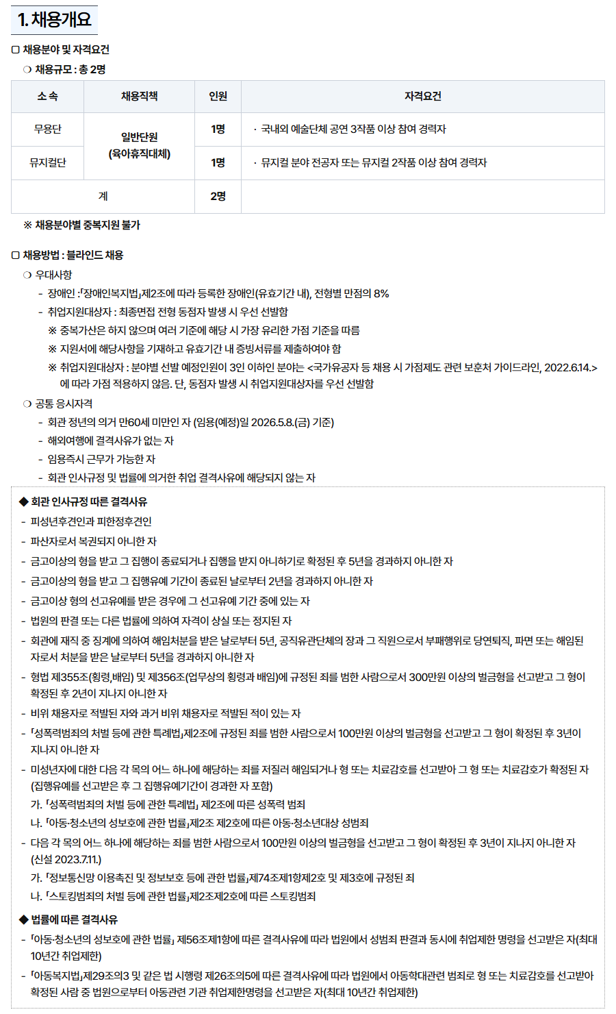 뮤지컬단 1명 · 뮤지컬 분야 전공자 또는 뮤지컬 2작품 이상 참여 경력자