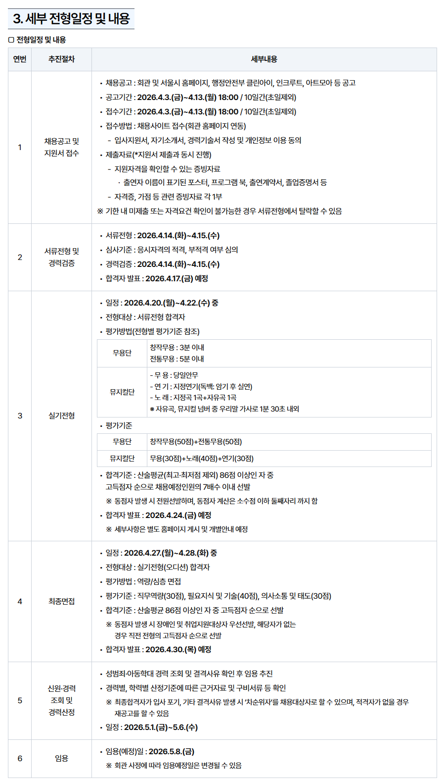 일반단원(육아휴직대체) 채용 공고 무용 ·뮤지컬