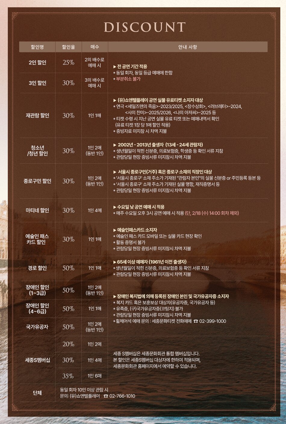 세종문화회관 콜센터 02-399-1000로 문의주세요.