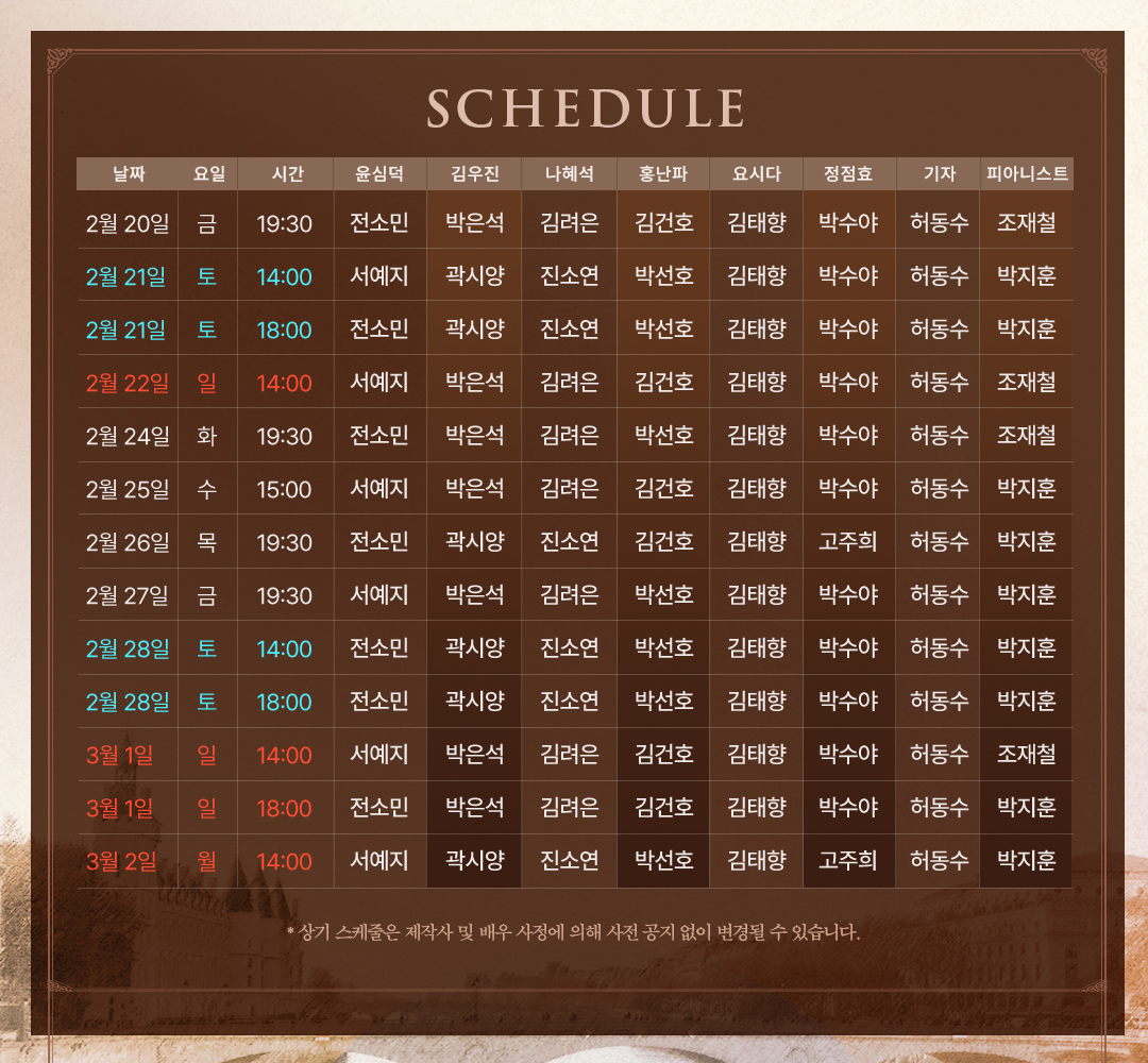| 기간 2026.01.30(금) ~ 2026.03.02(월) | 장소 세종M씨어터 위치보러 가기 |