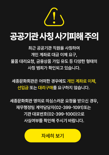 시공간 제약 없이 세종문화회관·세종충무공이야기 전시관을 만날 수 있는 서비스입니다.- 4월 카드사 무이자/부분무이자 할부 이벤트 안내 2026.04.03