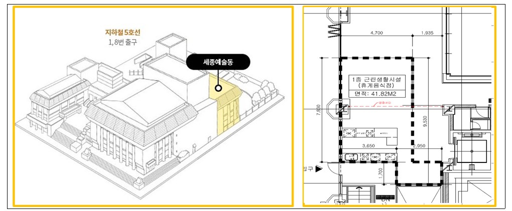 가. 입찰건명: 세종문화회관 예술동 1층 “카페” 사용허가 입찰 공고