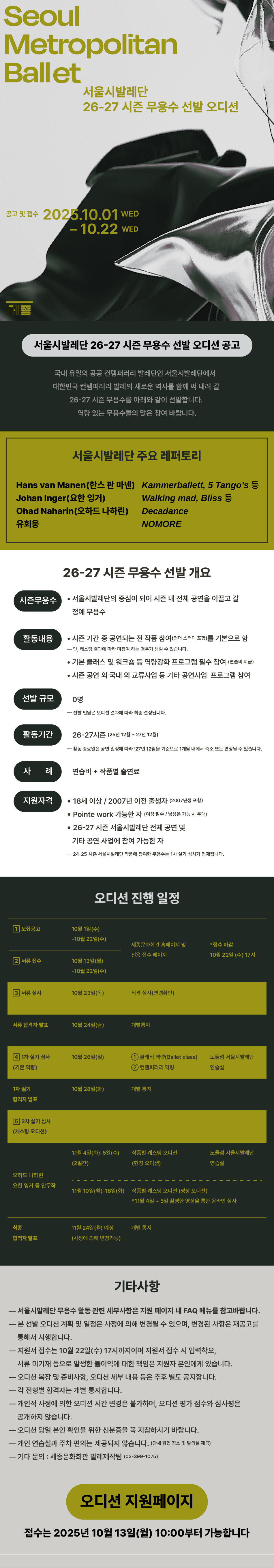서울시발레단 26-27 시즌 무용수 선발 오디션