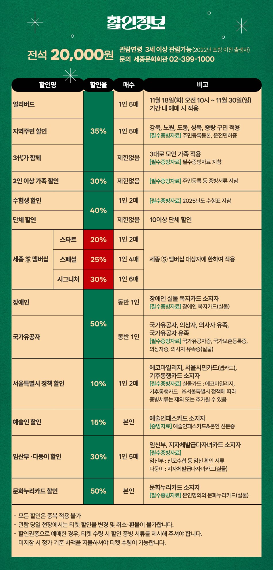 세종문화회관 콜센터 02-399-1000로 문의주세요.