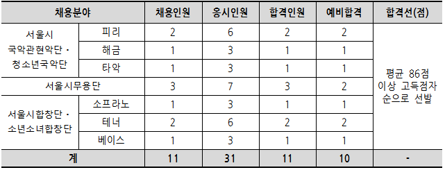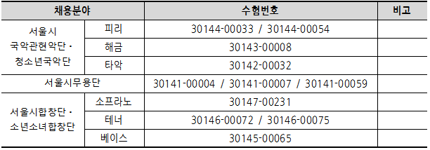 (재) 세종문화회관 서울시예술단(국악·무용·합창) 일반단원 공개채용 최종 면접전형 합격자 공고