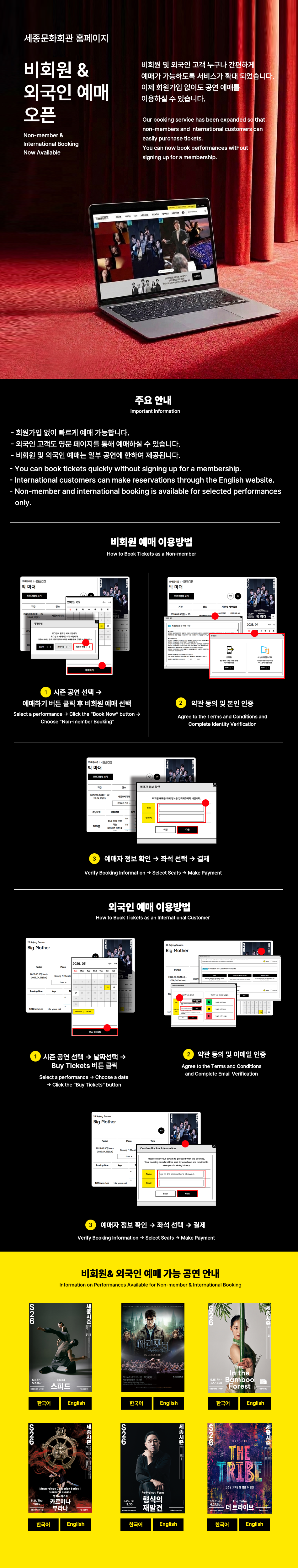 세종문화회관 홈페이지 비회원&외국인 예매 오픈