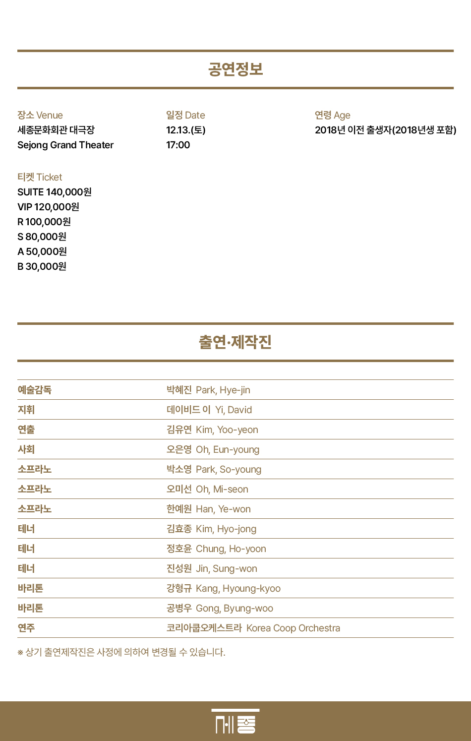 | 기간 2025.12.13(토) | 장소 세종대극장 위치보러 가기 |
