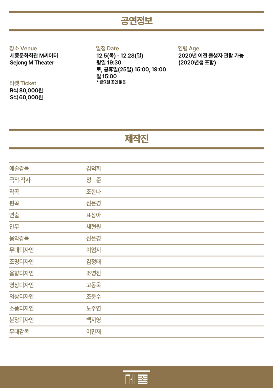 | 기간 2025.12.05(금) ~ 2025.12.28(일) | 장소 세종M씨어터 위치보러 가기 |