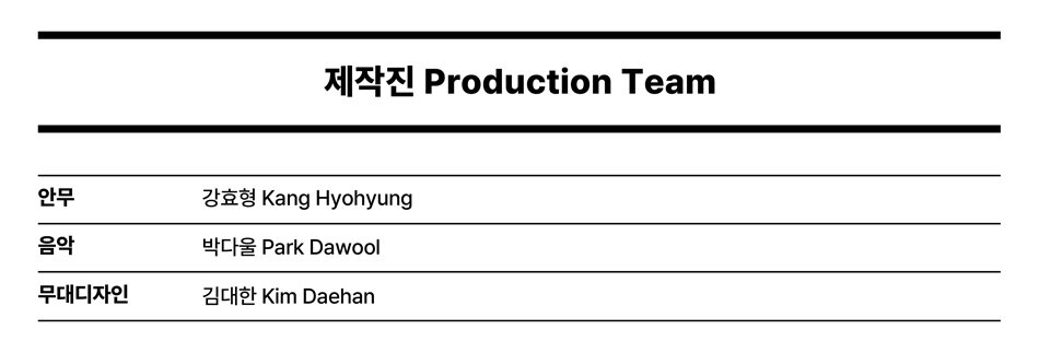 - 객석 내에서는 커튼콜을 제외한 사전 협의되지 않은 사진 촬영·영상 녹화·음원 녹음은 일절 금지됩니다. 관객 여러분의 적극적이고 자발적인 협조 부탁드립니다.객석 내에는 뚜껑이 있는 생수를 제외한 모든 음식물 반입 및 섭취가 불가합니다.