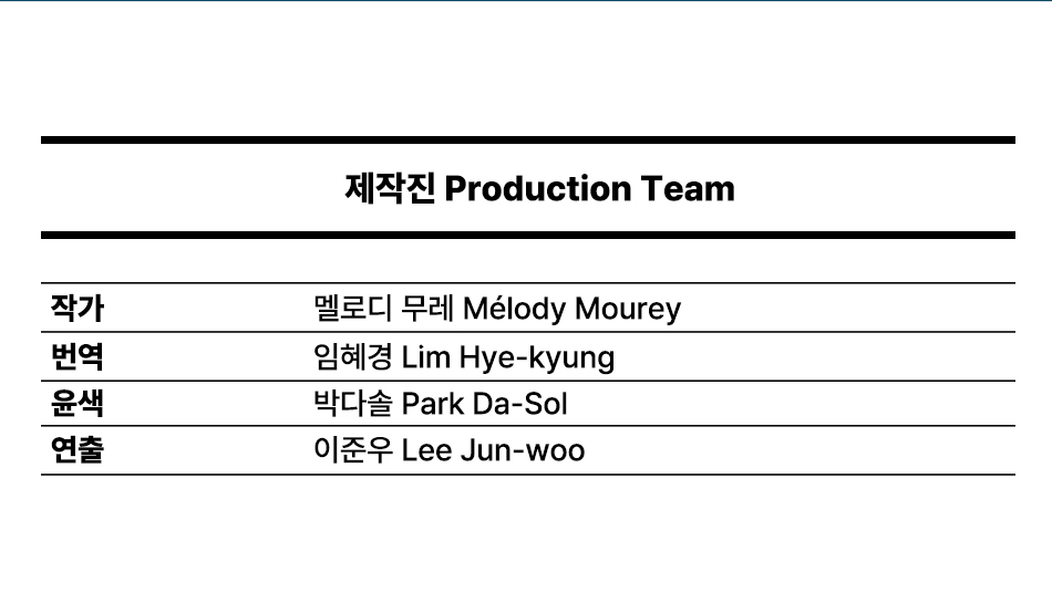 - 객석 내에서는 커튼콜을 제외한 사전 협의되지 않은 사진 촬영·영상 녹화·음원 녹음은 일절 금지됩니다. 관객 여러분의 적극적이고 자발적인 협조 부탁드립니다.객석 내에는 뚜껑이 있는 생수를 제외한 모든 음식물 반입 및 섭취가 불가합니다.