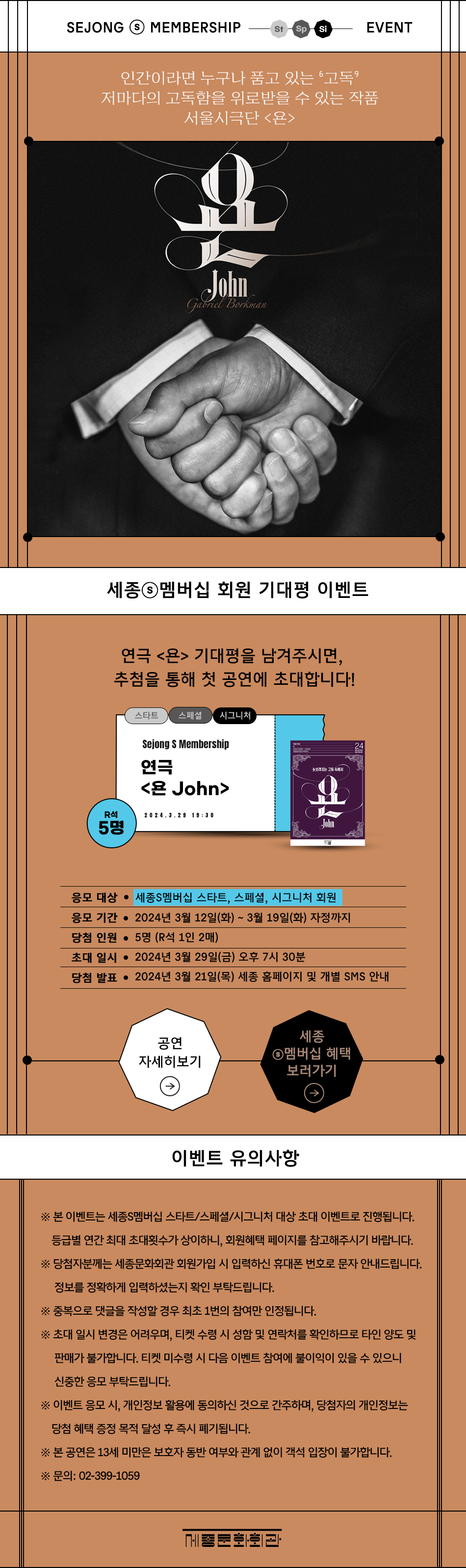 연극 <욘 John> 세종ⓢ멤버십 회원 기대평 이벤트